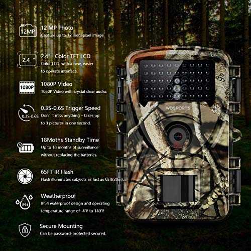 Wosports Wildkamera 20MP 1080P Jagdkamera Überwachungskamera mit Bewegungsmelder Nachtsicht Wasserdicht Nachtsichtkamera…