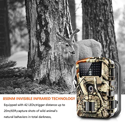 【Auslösezeit 0,3 – 0,6 Sek, nachtsicht Reichweit: 20m】 Mit schneller Reaktionszeit und 20m Reichweite werden KEINE Bewegungen von Tieren VERMISSEN. Nachtvideos und Fotos: Mit 42Stk. 940nm Infrarot Schwarzlicht. Folglich wird kein heller Blitz erzeugt. Die Tiere sind nicht erschreckt, wenn die Wildkamera Bilder aufnimmt. Die Auslöse Abfuhr liegt bis zu 20 M ( 66ft ) , bietet Ihnen ein verbessertes Nachtsicht.
