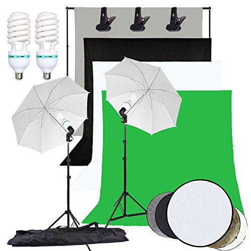Backdrop: 4x 1.6 * 3m Backdrops (Black White Green Grey) andere Verkäufer dessen ungeachtet 3, fit für 6ft * 10ft Kulissen steht, drei Klemmen frei, um Kulissen zu verschärfen 2 x 3M Professioneller Hintergrund Stützständer und Tragetasche für Kulissenständer.