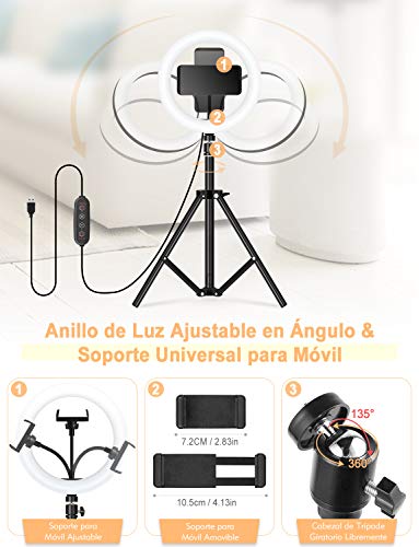 YISSVIC Lichtring, 25,4 cm (10 Zoll), Lichtring mit Stativ, Fernbedienung, 168 LEDs, 3 Lichtmodi und 26 RGB-Modi, für…