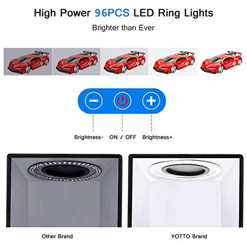 Brandneue Ausführung: Verabschieden Sie sich vom Plastik-Fotostudio und erleben Sie eine bessere Erfahrung für Ihre Aufnahmezeit. Das tragbare Beleuchtungszelt von YOTTO hat eine robuste Struktur und ist mit Oxford-Stoff umwickelt, der seine Qualität und Schießwirkung garantiert. Ausgestattet mit einem hohen Display bieten 96PCS LED-LICHTER eine höhere Helligkeit als je zuvor.