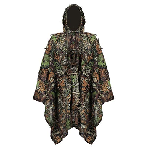 YuanDian Ghillie Suit Poncho Outdoor 3D Blätter Jagd Camouflage Camo Camping Vogelbeobachtung Cape Umhang statt dessen Militär CS Dschungeljagd Paintball Airsoft Wildlife-Abbildung Halloween
