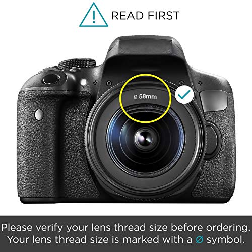 HINWEIS: BITTE PRÜFEN SIE VOR DER BESTELLUNG DIE OBJEKTIVGEWINDEGRÖSSE IHRER KAMERA. Dieser Weitwinkel ist zugegeben mit 58-MM-Objektiven kompatibel. Die Objektivgrößen variieren losgelöst von der Marke oder dem Modell der Kamera. Die Objektivgewindegröße Ihrer Kamera ist auf dem Objektivtubus markiert oder unter dem Objektivdeckel aufgedruckt. Vor dieser Nummer steht immer das Symbol „“ Ø „“ (Durchmesser). Zum Beispiel: Ø58 = 58 mm Objektivgewindegröße.