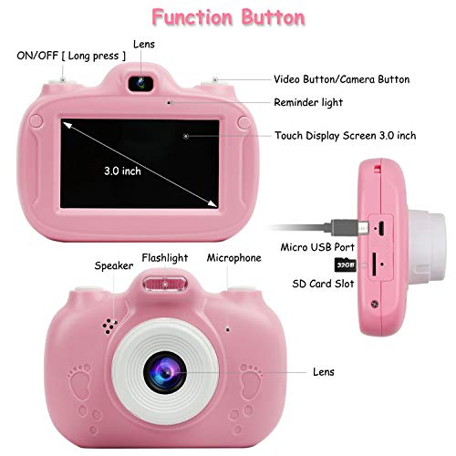 32G und 1000mAH: Diese pinkfarbene Kinderkamera wird mit einer 32G-Micro-SD-Karte geliefert, auf der 13000 Bilder gespeichert werden können. Der eingebaute 1000-mAH-Akkumulator ermöglicht eine bequeme tragbare Nutzung für ca. 3 Stunden. Ihre kleinen Fotografen können beginnen, die Welt um sich abgelaufen einzufangen und die Tat ihres Wachstums in unvergesslicher Erinnerung festzuhalten.