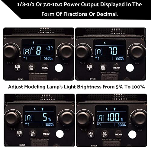 MEHRERE KOMPATIBILITÄT : Eingebauter 2,4-g-Funkempfänger (x-System), kompatibel mit verschiedenen Kameramarken. 1/8-1/1 oder 7,0-10,0. die Helligkeit des Einstelllichts von 5 % bis 100 % anpassen