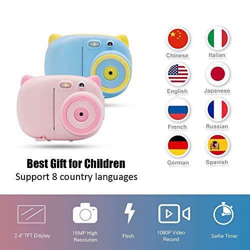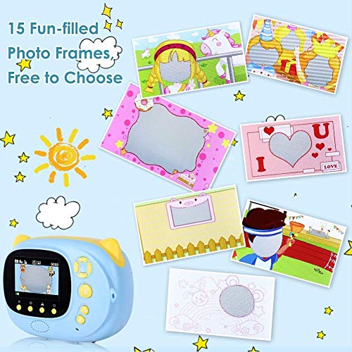 Zooma Kinder Digitalkamera Spielzeug, Sofortbildkamera Kinder Kamera mit WiFi + Druckerpapier + Farbpinsel + Malbuch, Tragetasche, Verschiedene Rahmen