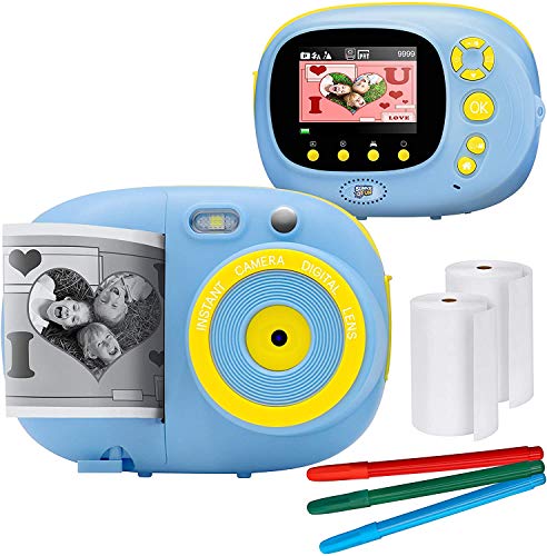 【Einfach zu drucken und zu teilen】 Diese Sofortdruckkamera erleichtert das Absorbieren, Anzeigen und Eintauschen von Bildern. Wiedergeben und klicken Sie einfach, um hochwertige Fotos zu drucken, die Sie teilen können, ohne dass Computerverbindungen erforderlich sind. Unterstützt den Bildvideomodus, kompakt und klein Größe, einfach zu bedienen, Fotos können sofort ausgedruckt und aka auf einer Micro SD-Karte gespeichert werden.