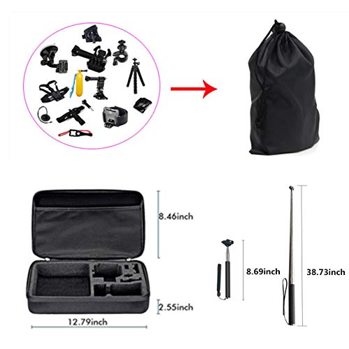【Alles in einem Set】Das Action Kamera Zubehör-Kit umfasst Handschlaufe, Saugnapfhalterung für das Auto, Brusthalterung,Kopfschlaufe, Stativ, Selfie und schwimmenden Griff usw. Anti-Beschlag Einlagen, Aufbewahrungstasche der ideale Begleiter für unterwegs.Hält Ihre Kamera Stabil und erfasst atemberaubende Ansichten Ihrer Actionsportarten wie Snowboarden, Skateboarden und mehr.